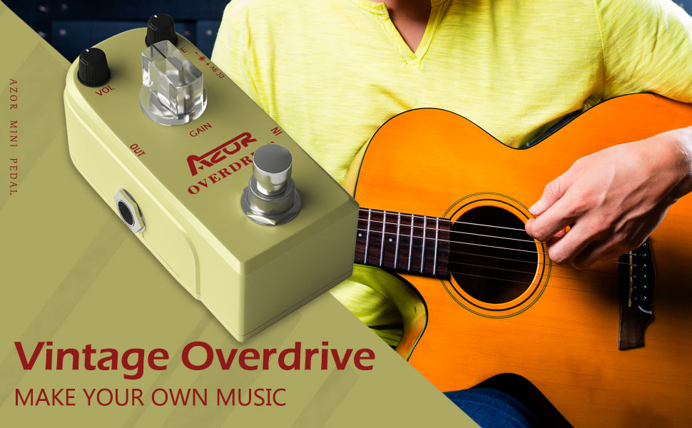 This Vintage Overdrive Pedal With three function knobs, VOL, TONE and TONE. You can just control three function knobs and choose the model you want to made you own music tone.